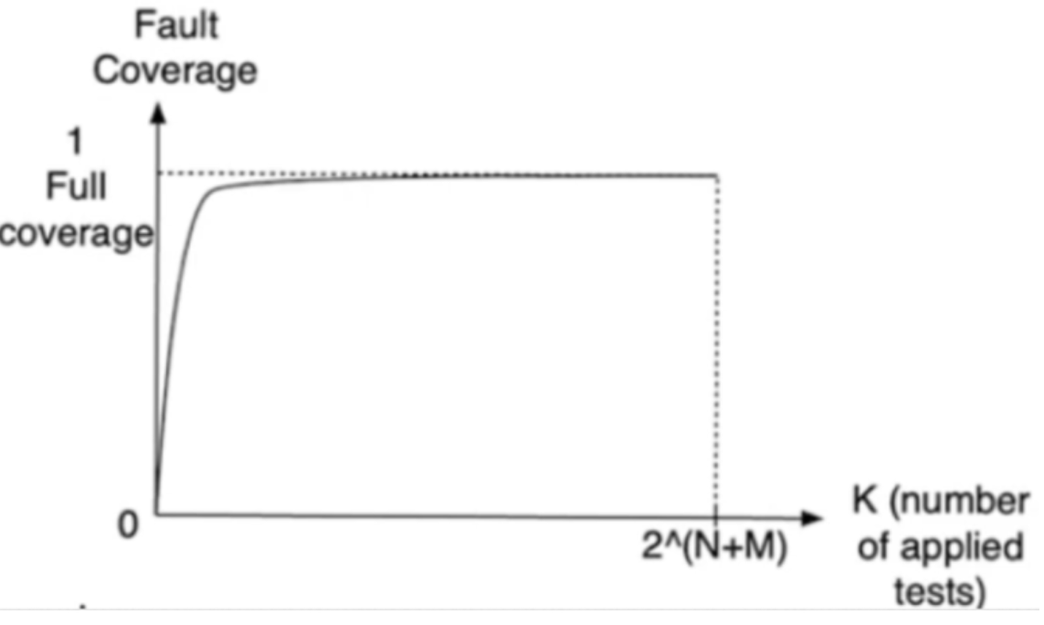 High fault coverage is desirable to ensure defective chips are identified, but achieving 100% coverage is impractical due to the exponential increase in testing time and cost. Fault coverage typically rises quickly with initial test patterns but saturates, as remaining faults are harder to detect. Industry often targets 95–99% coverage to balance quality and time-to-market Fault Coverage.