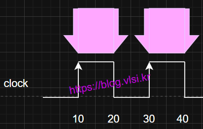 At t = 0ns (Rising Edge): L1 becomes transparent, and L1’s D data propagates through combinational logic to L2’s D input.