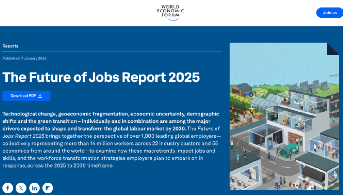 https://www.weforum.org/publications/the-future-of-jobs-report-2025/ The Future of Jobs Report 2025 Learn how global trends like tech innovation and green transition will transform jobs, skills, and workforce strategies in The Future of Jobs Report 2025