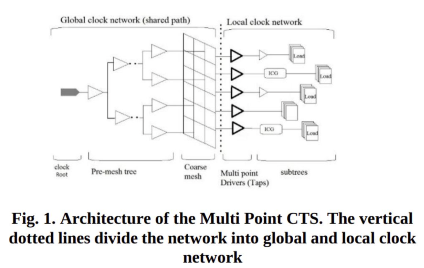 This hybrid approach combines traditional CTS and clock mesh techniques: