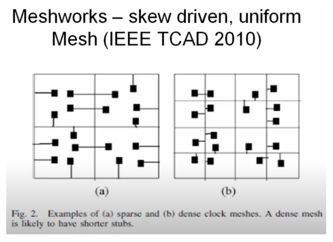 This hybrid architecture guarantees smaller skew than pure trees while controlling the power and area costs that come with a full mesh — making it the dominant solution in modern industry.