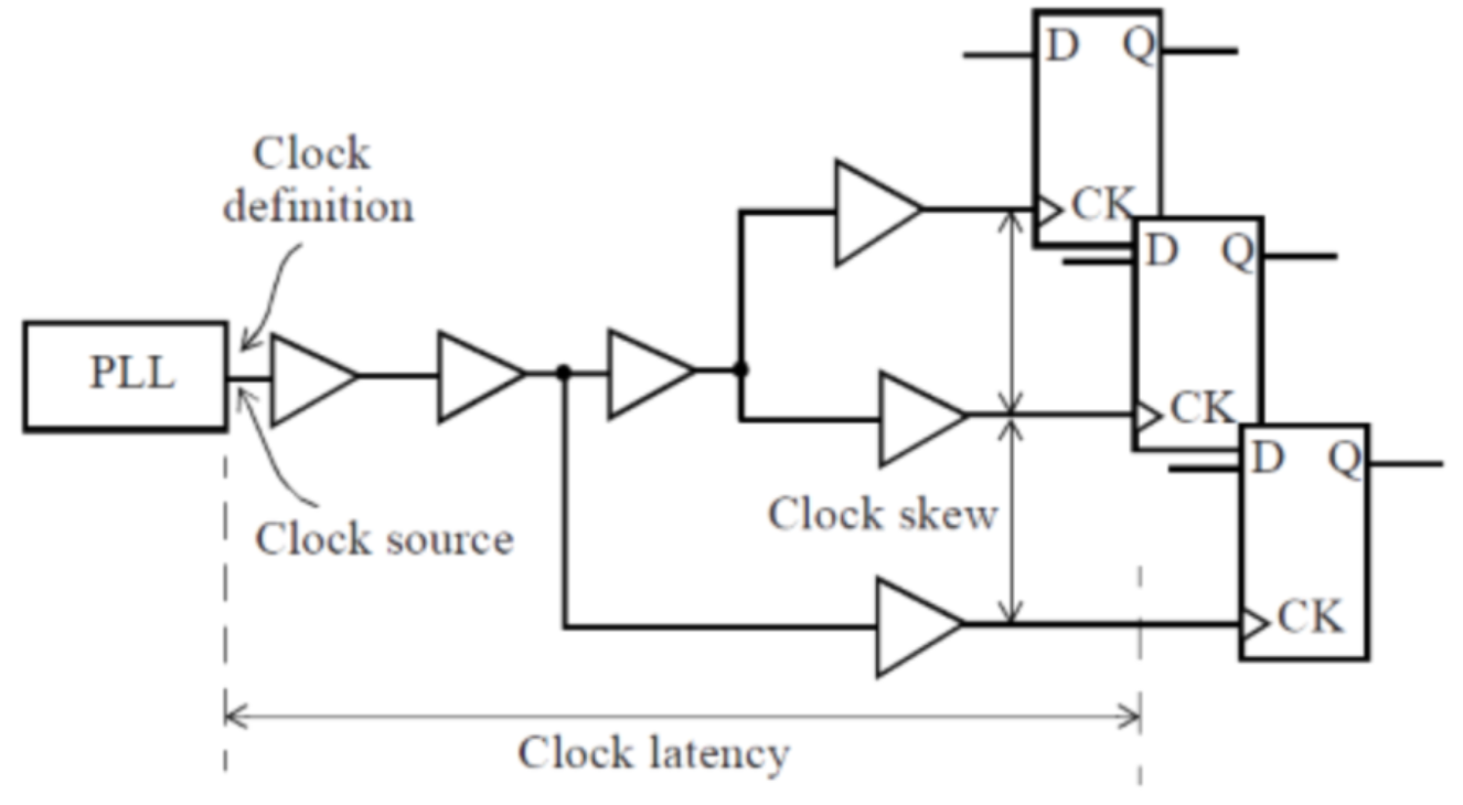 The delay from the clock source to the clock pin of a sequential cell is called Clock Latency.