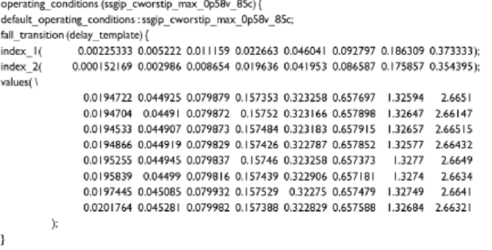 Since SPICE simulations are very slow, it's impractical to run them for every cell in a complex VLSI circuit. Therefore, the calculated values for each standard cell are pre-calculated and stored in a database file. This way, when an EDA tool needs to perform a timing calculation, it can simply look up the values in the database, which is much faster. This is the purpose of library characterization.